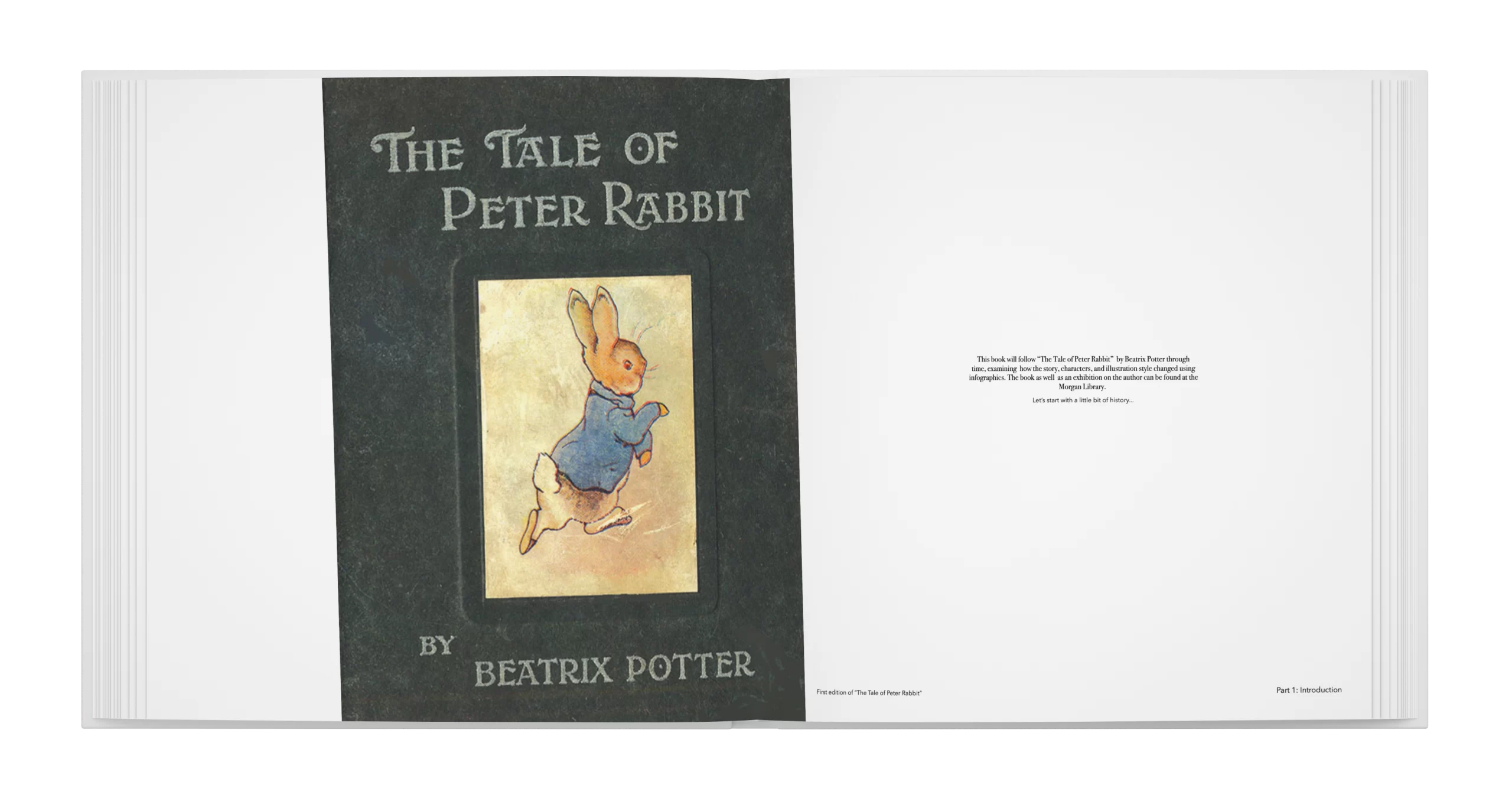 I designed three research books centered around the theme of libraries. The first book focuses on the Morgan Library and Museum and utilizes infographics to tell the story of Peter Rabbit and the character's journey through time.